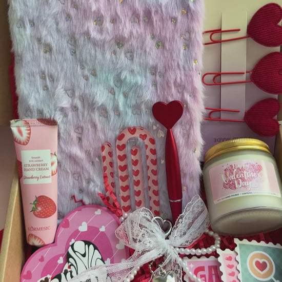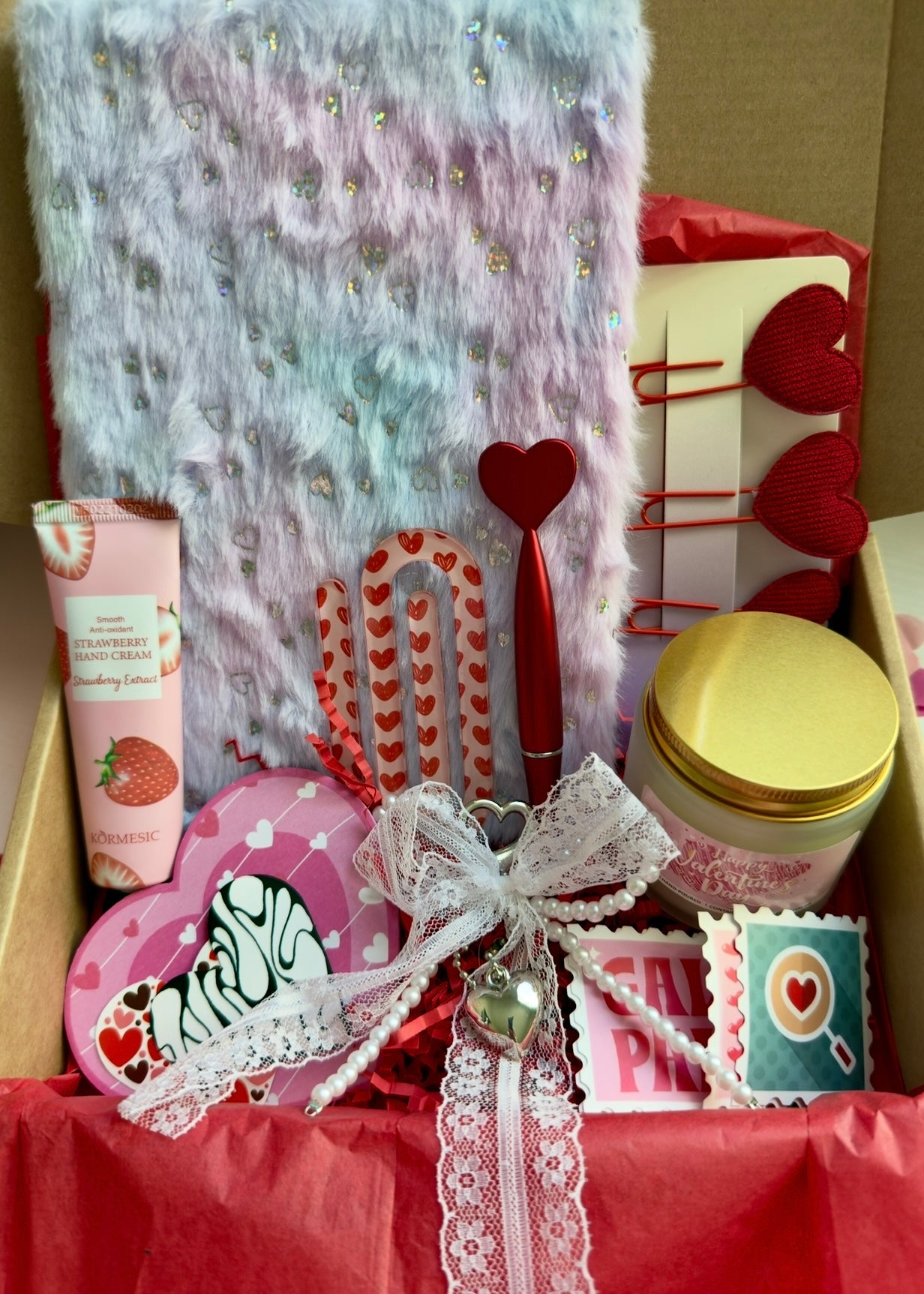 Give the gift of warmth and creativity this Valentine’s Day. Our curated "Sweetheart Stationery" box is designed for the girl who loves to journal, pamper herself, and keep her life organized with a touch of pink. From the fluffy, cloud-like notebook to the strawberry-scented hand cream, every item in this box says "you are loved."
